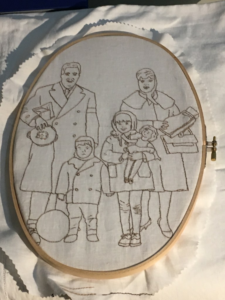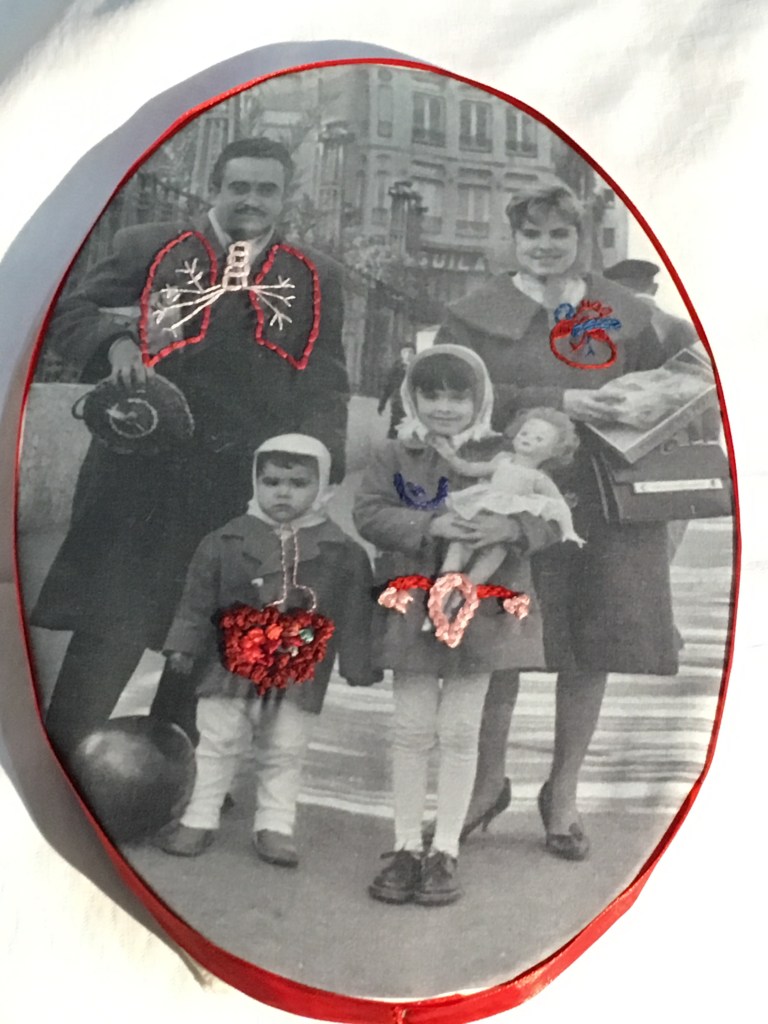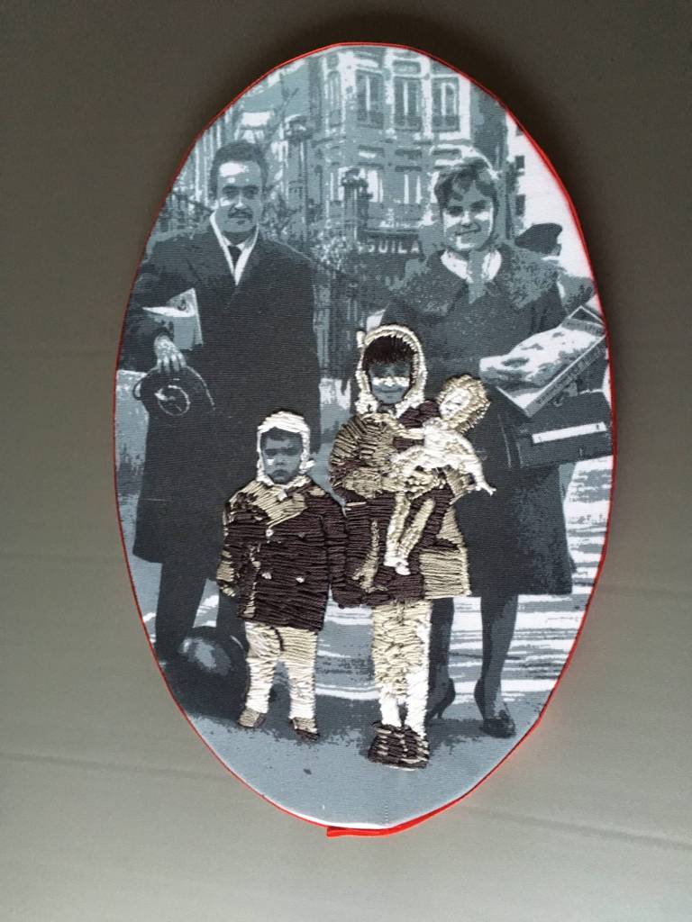 Se trata de una indagación autobiográfica realizada a partir de algunas fotografías de mi albúm familiar, utilizándolas como punto de partida y haciendo uso de la técnica del bordado para recrear con ella sus planos, colores y atmósferas.